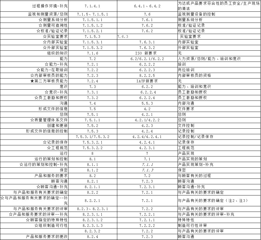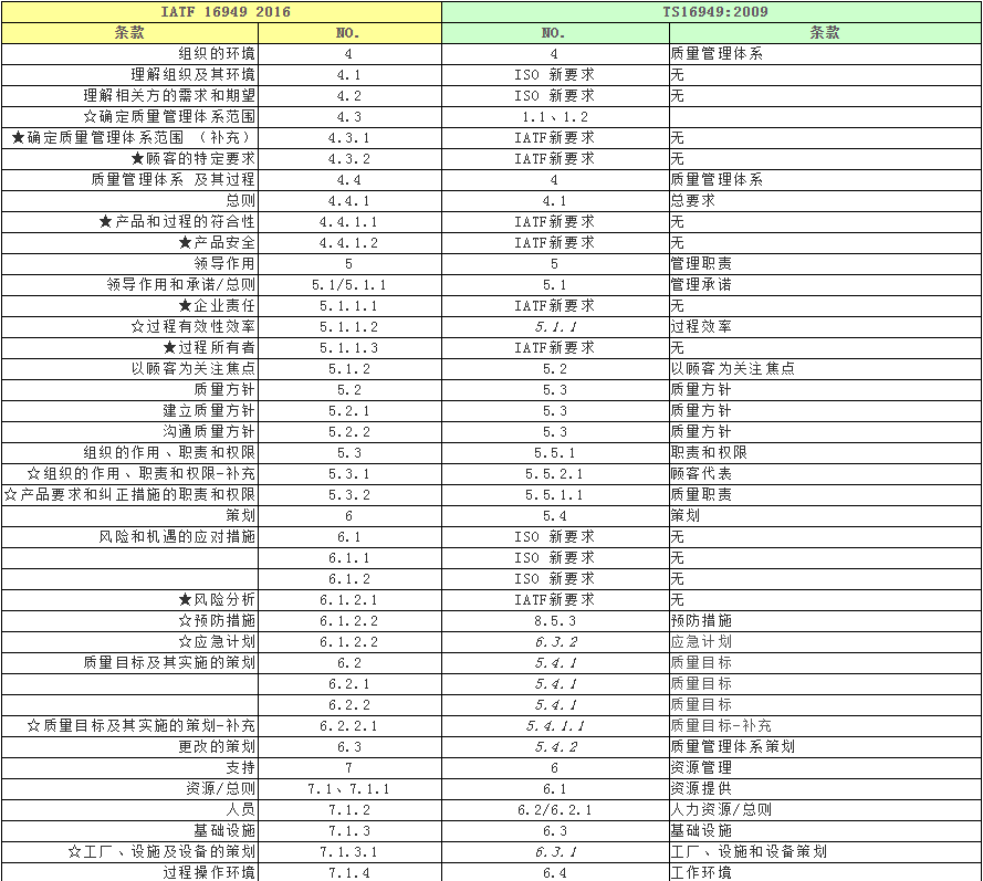IATF16949与TS16949标准对照表